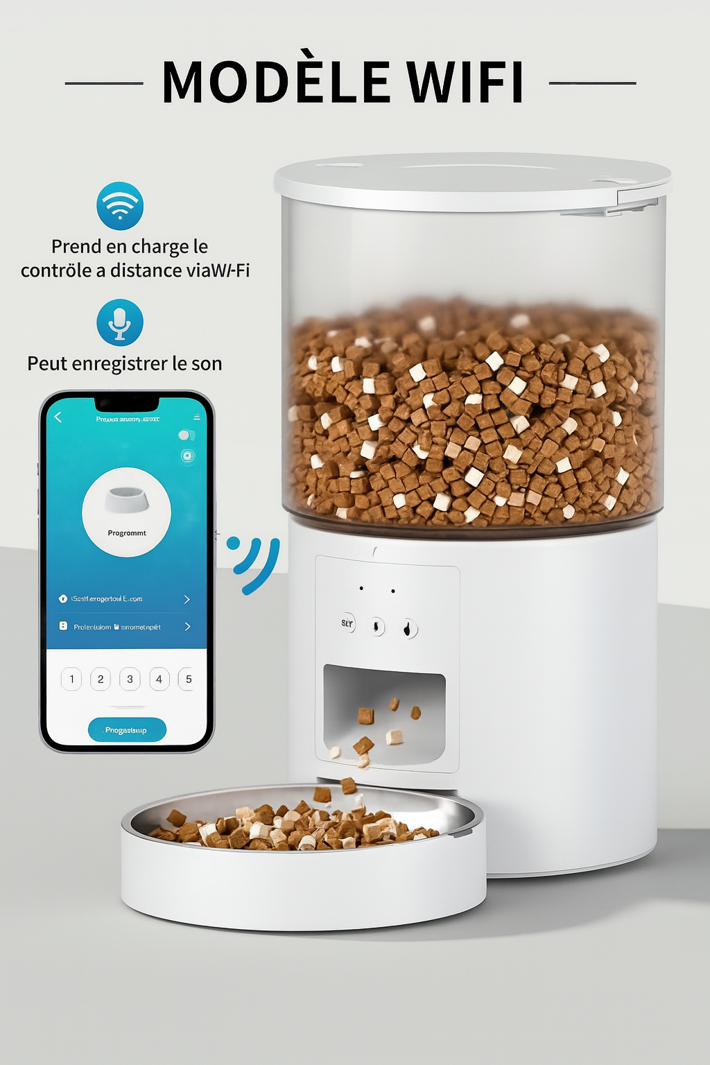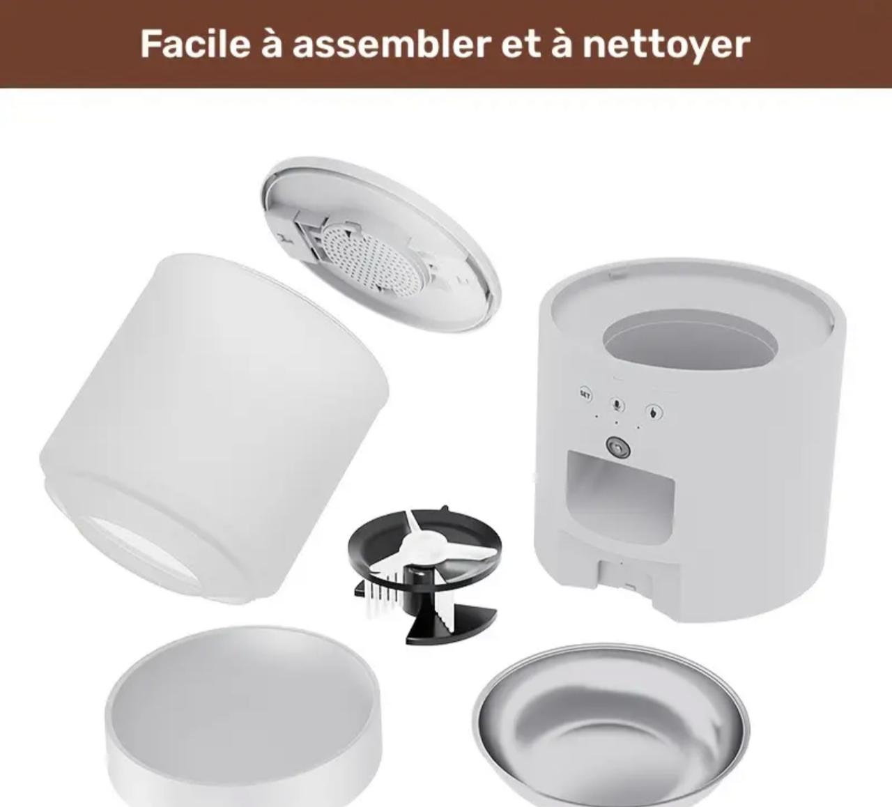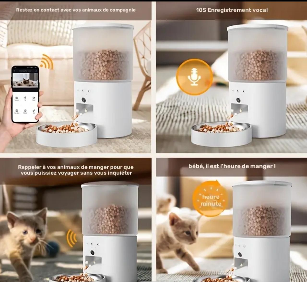 Offrez à votre chat une routine alimentaire fiable, même lorsque vous n’êtes pas à la maison. Ce distributeur automatique intelligent, au design moderne et discret, vous permet de planifier chaque repas avec précision, tout en créant un moment de complicité grâce à sa fonction message vocal intégré.