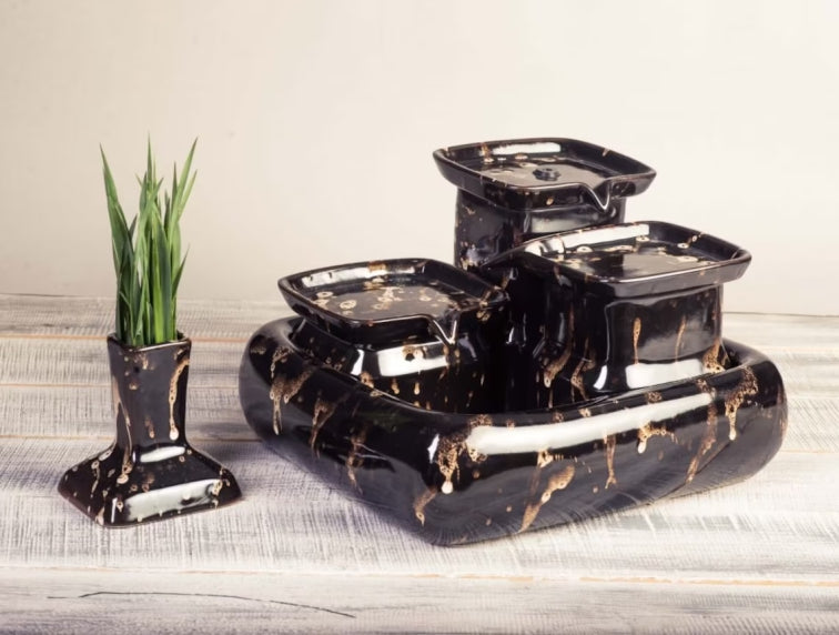 🍽️ Facile à entretenir, cette fontaine est lave-vaisselle conviviale, assurant une propreté sans tracas. Fabriquée à la main avec dévouement et cuite à 2210 Fahrenheit, chaque pièce est une œuvre d'art durable.